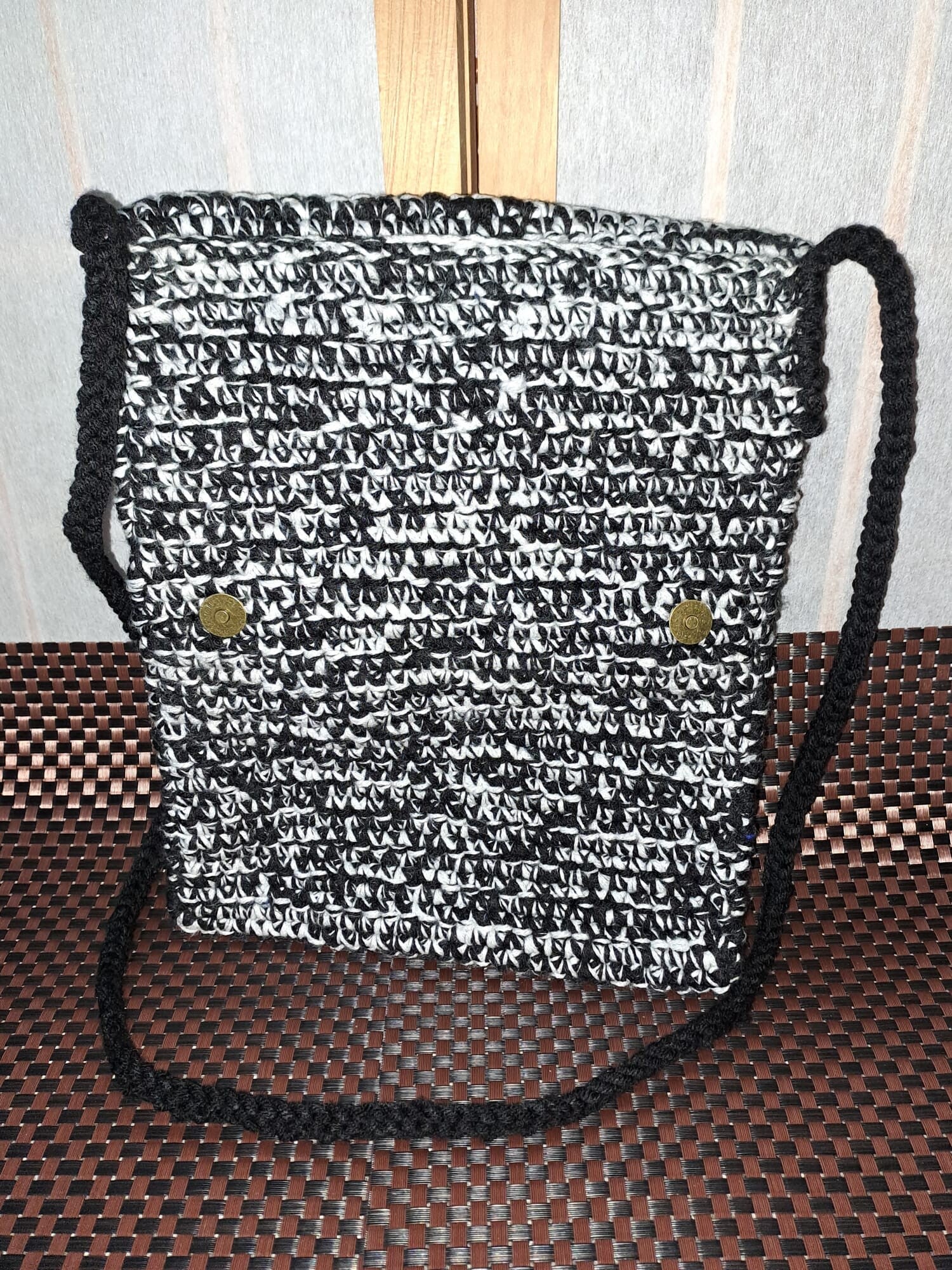 Schultertasche „Marmoriert Schwarz-Weiß“ – handgehäkelt mit Charakter