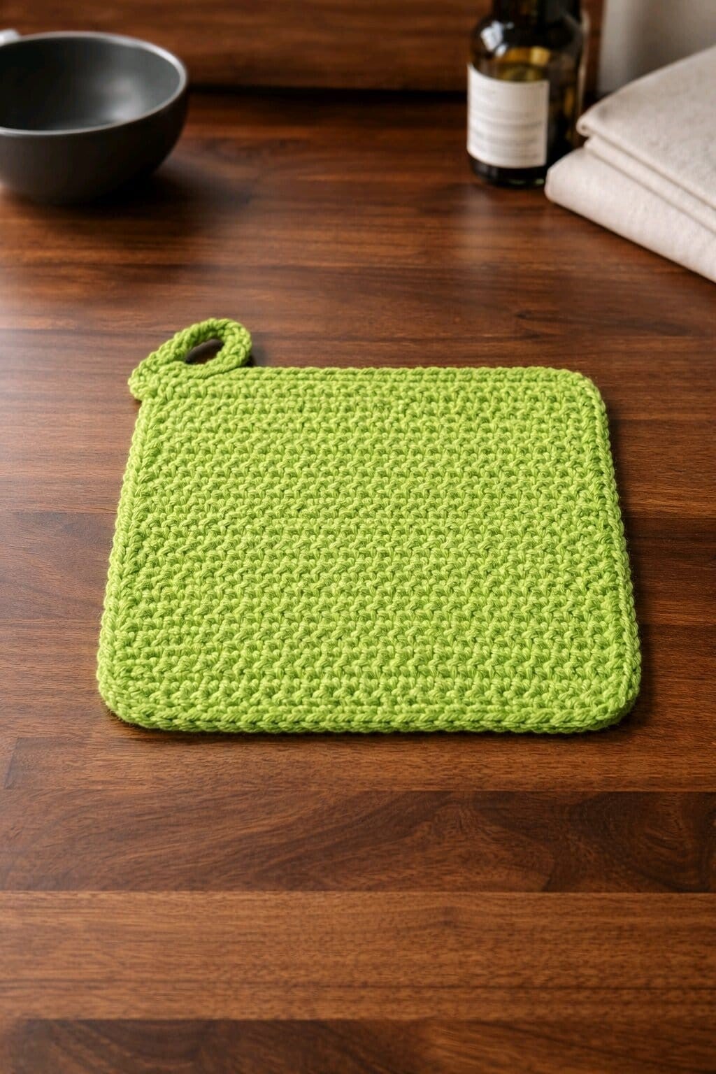 Topflappen „GrünKlar“ – Handgehäkelt & Hitzefest