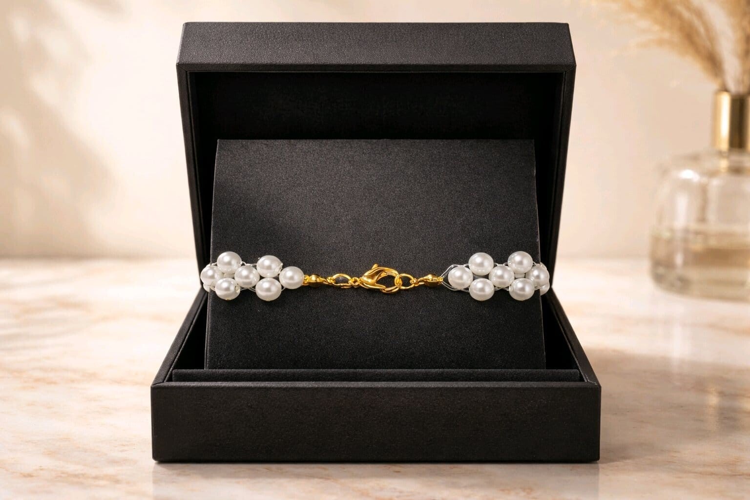 Perlenarmband „Eisglanz“ mit Goldfarbenen Verschluss– Handgemacht mit Liebe