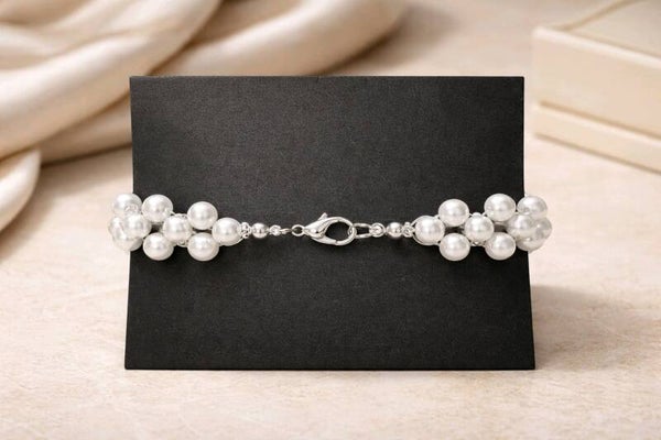 Perlenarmband „Eisglanz“ mit Silberfarbenen Verschluss – Handgemacht mit Liebe