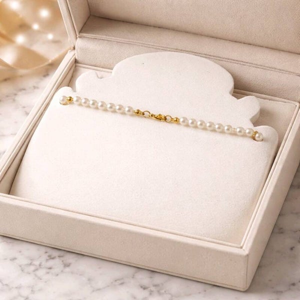 Diese handgefertigte Kette ist ein echter Blickfang für Liebhaberinnen von sanften Kontrasten und liebevoller Detailarbeit. Kleine, elfenbeinfarbene Perlen reihen sich in einem harmonischen Muster aneinander und bilden die Basis für das florale Mittelstück: eine große, glänzende Perle in intensivem Lila, umrahmt von sechs zart schimmernden Perlen in Elfenbein-Beige. Das Arrangement erinnert an eine stilisierte Blüte und verleiht der Kette eine feminine, verspielte Note.
