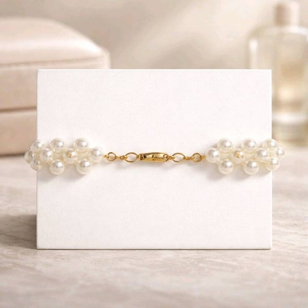 Perlenarmband „Viola“ mit Goldfarbenen Verschluss – Zarte Harmonie in Elfenbein & Lila