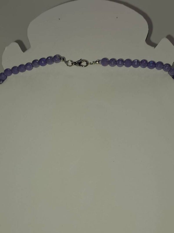 Perlenkette „Fliedertraum“ mit Silberfarbener Verschluss – Zartes Lila mit floraler Mitte