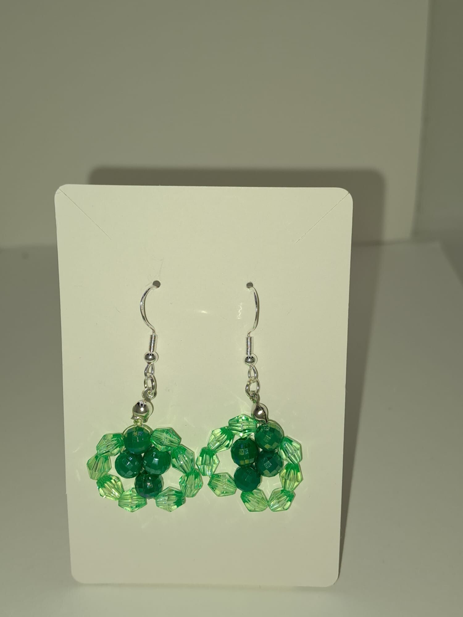 Elegante Ohrringe „Jadeblüte“ mit Silberfarbenen Ohrhaken– Handgemacht aus Kunststoffperlen